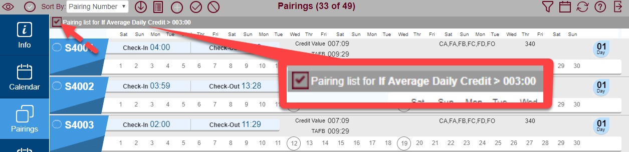 Click the circle beside a pairing number. You can select one or multiple pairings.